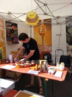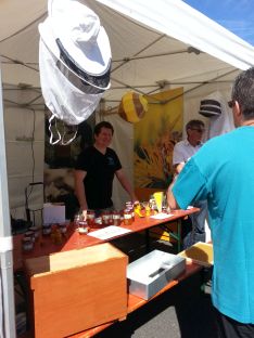 Nous en avons également profité pour proposer notre miel aux visiteurs: dégustation et vente de pots: ce fut un franc succès car le stock prévu à la vente a été vendu assez rapidement