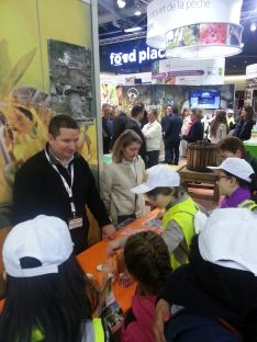 Certains s'approchent pour des informations sur le métier et les abeilles.