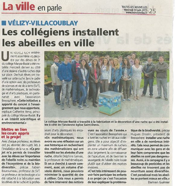 Inauguration d’une ruche construite et décorée par les élèves du collège Maryse Bastié (Juin 2015)
